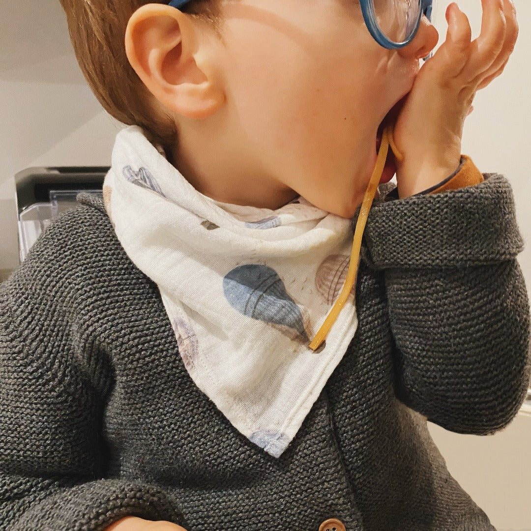 Non seulement super pratique, les foulards en mousseline donnent une touche fraîche et cool à la tenue de votre enfant.